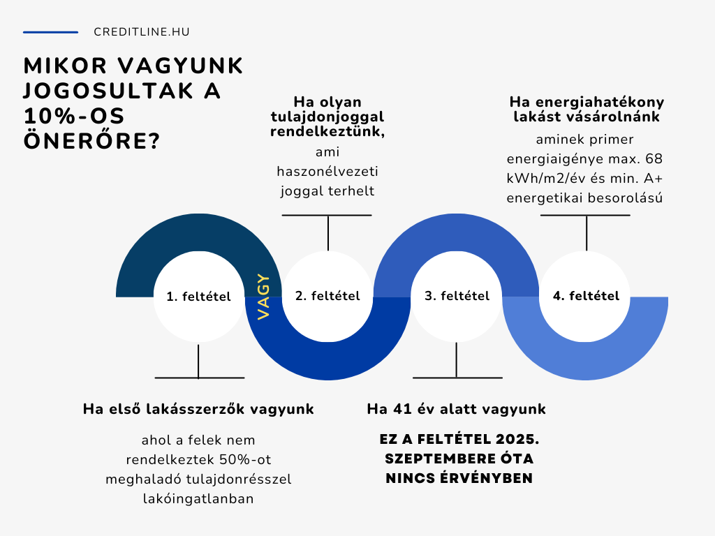 Lakáshitel esetében jellemzően 20%-os önerőről beszélhetünk. Az első lakásvásárlók számára ez azonban lehet csökkentett mértékű, mindössze 10%-os. Ez esetben feltétel