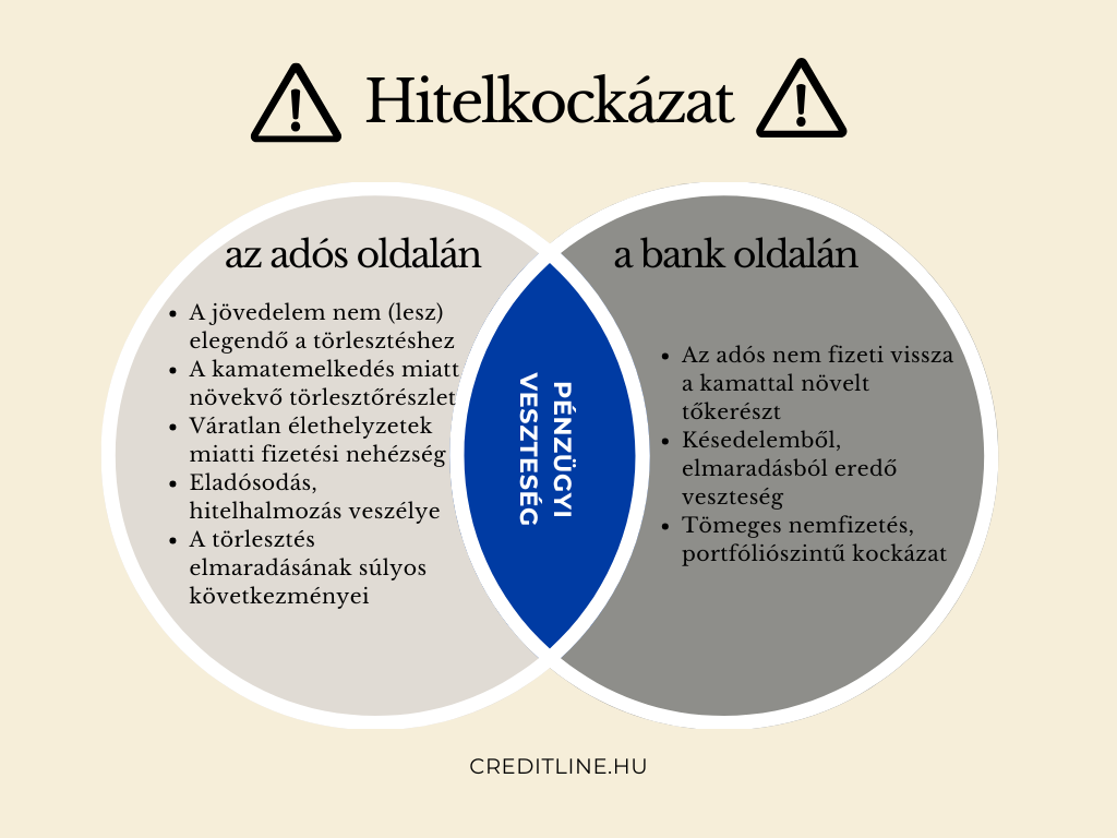 A hitelkockázat szempontjából mind a bank, mind pedig az ügyfél számára az jelenti a legfontosabb tényezőt, hogy az adós nem tudja hitelét a szerződés szerint törleszteni. Ez a kockázat jellemzően akkor merül fel, ha valamilyen okból kifolyólag megváltozik a hitel törlesztőrészlete vagy az adós jövedelme.
