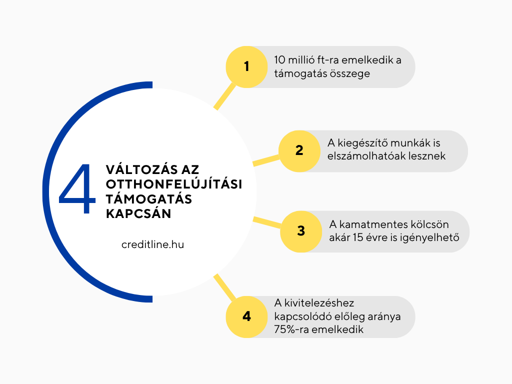A felhasználhatóság és az igényelhető összeg bővítésén felül a hitel feltételei is egy kisebb frissítésen mennek keresztül. A kamatmentes kölcsön a korábbi 12 éves futamidő helyett már akár 15 évre is igényelhető, aminek köszönhetően csökkenhet a havi törlesztő összege is. Ezen felül pedig további könnyítést jelent, hogy a kivitelezéshez kapcsolódó előleg aránya 75%-ra emelkedik.