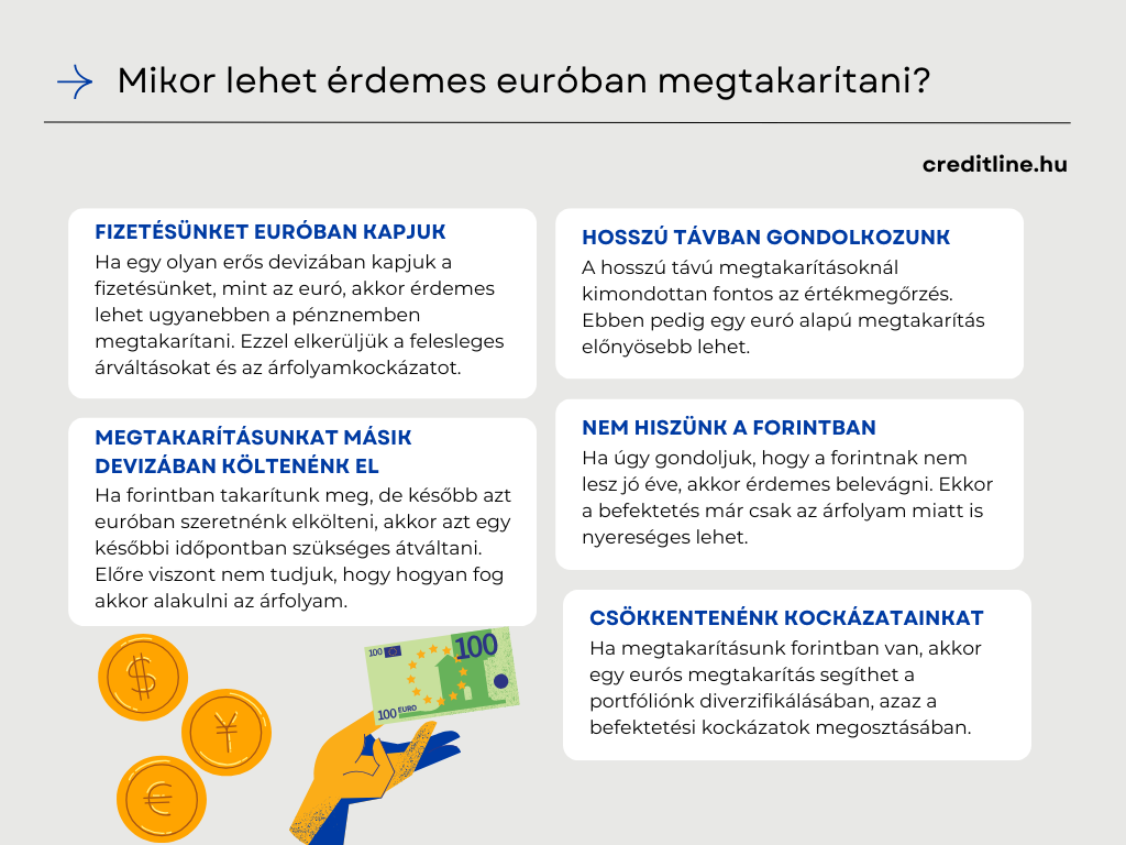 Általánosságban öt olyan helyzetről beszélhetünk, amikor célszerű lehet valamilyen eurós megtakarítás mellett dönteni:
