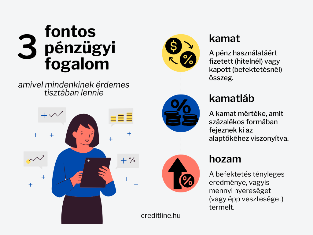 Legyünk tisztában a kifejezésekkel: a kamat nem egyezik meg a hozammal. Habár a mindennapokban gyakran szinonimaként használjuk őket, van egy fontos különbség. Az előzőek alapján a kamat a pénz ára, míg a hozam a tényleges eredmény, amit a befektetésünkkel elérhetünk. A hozam nem csupán a kamatot foglalhatja magában, hanem az árfolyamnyereséget és az osztalékot is.